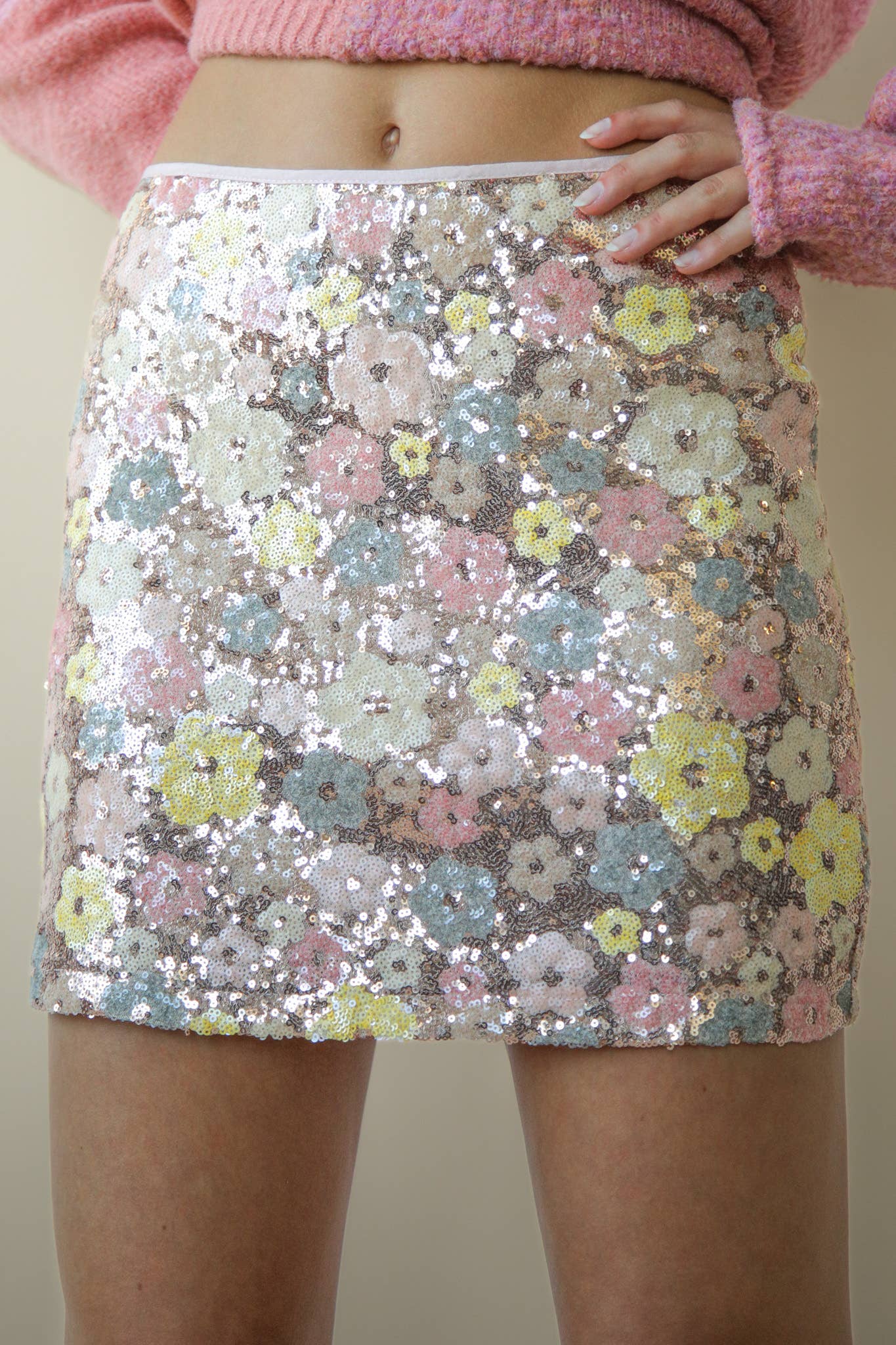 Floral Sequin Holiday Mini Skirt - W/ Lining - Back zipper