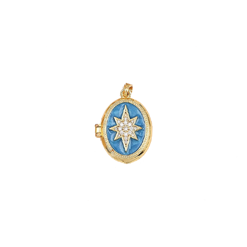 Capture your cosmic moments in this enchanting Blue Stellar Locket. Adorned with lustrous cubic zirconia accents and celestial-inspired details, this delicate pendant invites you to keep your most treasured memories close to your heart. Perfect for stargazers and dreamers alike, it's a whimsical way to carry what matters most wherever you wander.