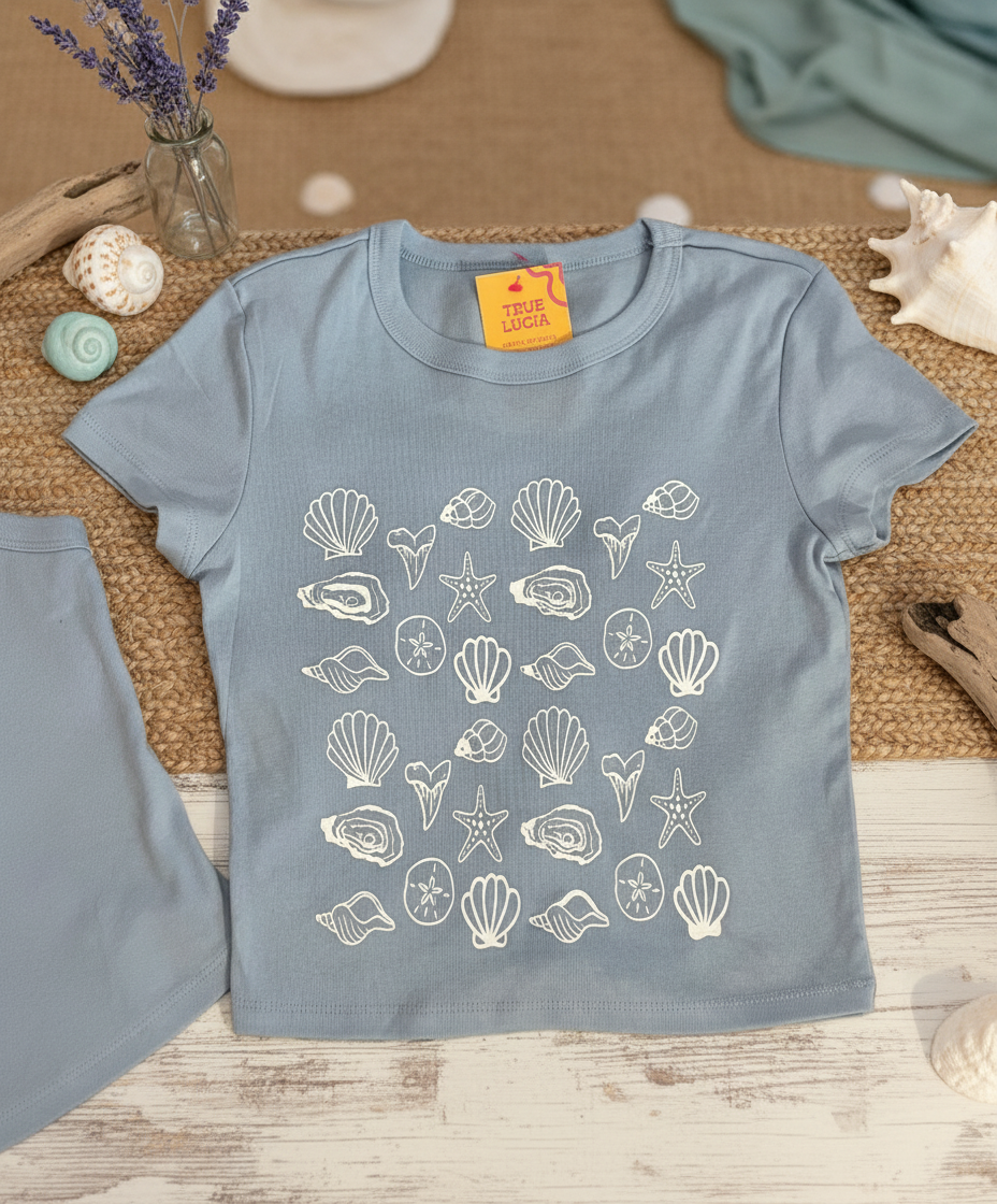 Dive into coastal charm with this adorable baby tee featuring whimsical shells and sand dollars. Perfect for little beach lovers, this playful piece captures the magic of seaside adventures in a soft, comfortable fit. Whether you're planning a beach day or just dreaming of sandy shores, this cute tee brings that carefree ocean spirit wherever you go. An essential addition to any kid's wardrobe that celebrates the joy of the sea.