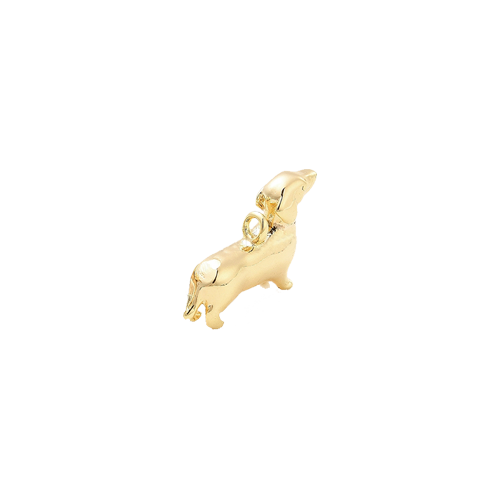 Meet your new favorite accessory! This adorable wiener dog charm brings a dash of whimsy to any collection. Crafted in gleaming gold, it's the perfect pint-sized companion for charm bracelets, necklaces, or anywhere you want to add a little dachshund-inspired fun. A delightful gift for dog lovers and charm enthusiasts alike.